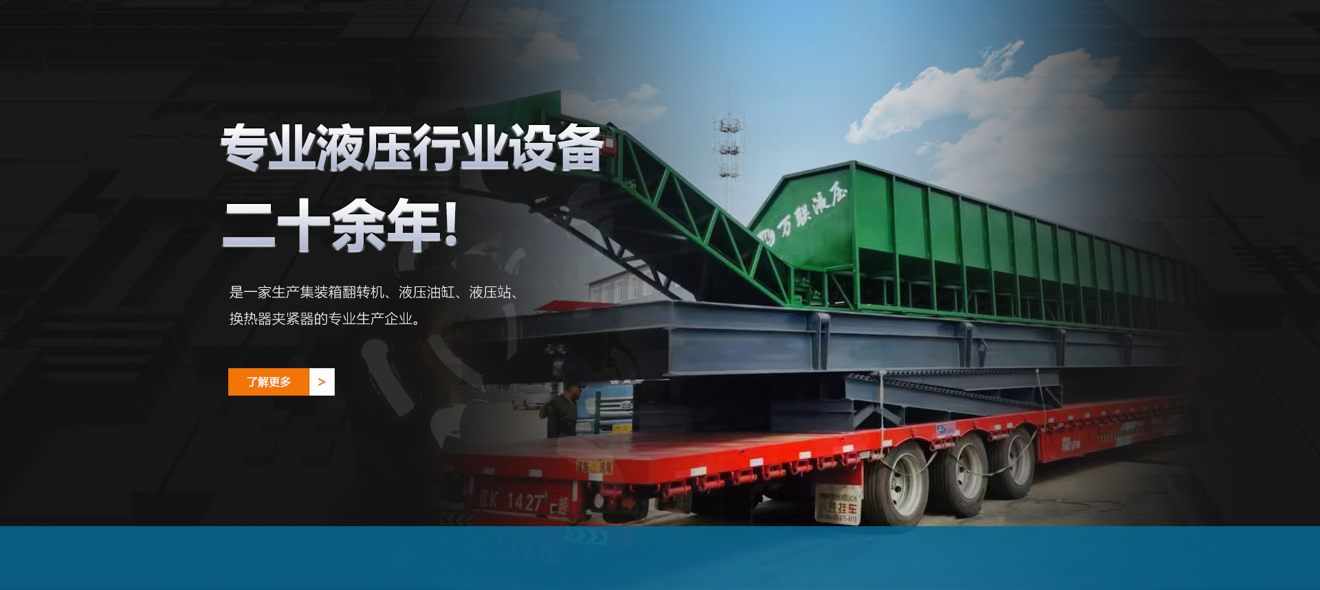 遼寧萬聯(lián)液壓熱力制造有限公司是一家生產(chǎn)液壓翻板機(jī)、集裝箱翻轉(zhuǎn)機(jī)、液壓油缸、液壓站、液壓夾緊器的專業(yè)生產(chǎn)企業(yè)。2010年在遼寧昌圖縣老四平工業(yè)園新建車間